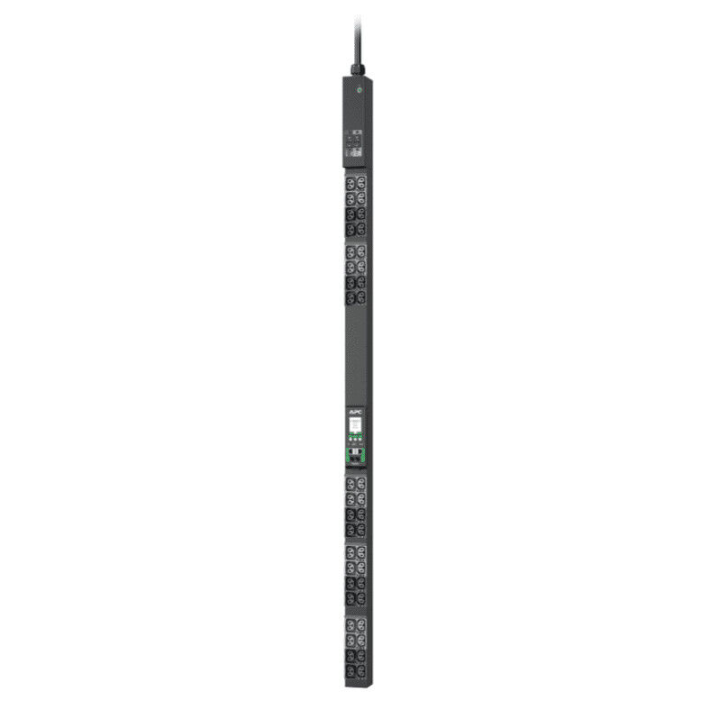 APC NetShelter Rack PDU Advanced provide reliable power distribution to IT Equipment within server and/or networking racks. PDU level power metering via remote access and local display for power visibility and notification of potential overload. 4-in-1 combination outlets which can be used as either C13, C19, C15, or C21 outlets provide unparreled deployment flexibility. Maximum outlet density with 40 outlets in a 2.2″ wide form factor. Outlets on the PDUs are color coded by breaker to simplify deployment. Power Sharing allows PDUs cascaded together via 2 ethernet ports enable an Network Management Card to continue functioning in the event of an AC power loss. No interruption in Network communication, sensors operation, and alarm traps. Live Swap Network Management Card (NMC) which can be replaced without powering down the PDU or connected devices to minimize downtime in the unlikely event of an NMC power event. Rated and approved to operate up to 60C (140F) at full load ensures reliability and availability even in today’s high density deployments. Gigabit ethernet to enhance and standardize network connectivity across all assets in the data center. A second ethernet port (10/100) is available to allow cascading to other PDUs, connect to a 2nd private network, or provide network redundancy. 1% metering accuracy for the peace of mind to use NetShelter Rack PDU Advanced to bill based on power usage. In addition, the higher level of accuracy ensures the most precise measures for capacity planning and threshold alarm monitoring. Two environmental sensor ports allow for optional sensors (sold separately) to be connected.